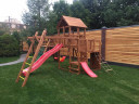 Подходит как для самых маленьких, так и для подростков. Здесь есть качели и мостик, скалодром, башня и корма корабля, горка и турник с большим рукоходом!