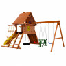 Детский городок изготовлен из северной древесины хвойных пород, обработанной безопасной декоративно-защитной пропиткой. Технология значительно увеличивает срок службы конструкций, повышает прочность древесины, защищает её от гниения и грибков. Обработка придаёт дереву приятный оттенок, проявляет и подчёркивает его текстуру. Используемая пропитка не содержит токсичных компонентов, экологична и абсолютно безопасна для ребёнка. Состав прошёл санитарно-эпидемиологическую экспертизу в Центре гигиены и эпидемиологии в г. Раменскому.