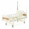 Каркас стальной с защитным эмалевым покрытием. Положение подвижных секция осуществляется с помощью червячного привода. Боковые поручни опускаются до уровня ложа. Торцевые спинки сьемные. В основании кровати предусмотрена полка для хранения санитарного устройства.