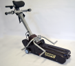 Далее, поменяв руки местами, вывести из зацепления со стойкой спинки коляски второй захват фиксатора, после чего, вернуть электрический лестницеход назад в собственное устойчивое положение, отпустить ручные тормоза на колёсах инвалидного кресла-коляски и скатить его с опор подъёмника. Сложить и повернуть откидные боковые опоры электро-подъёмника в транспортное положение и переместить подъёмник к месту зарядки аккумуляторных батарей.